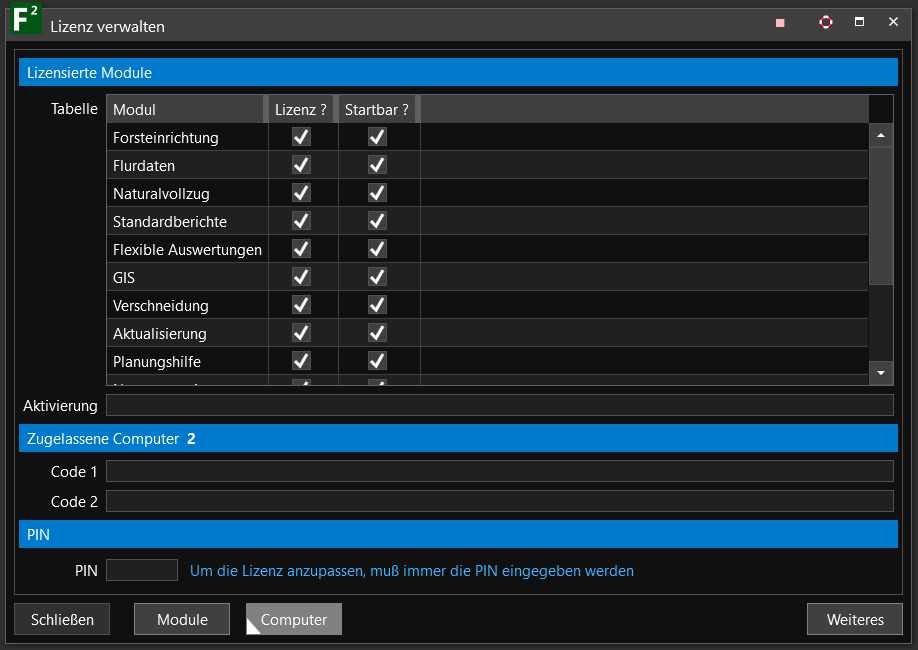 Die Software FIP² müsste nun als Lizenz auf Ihrem Computer freigeschalten sein. FIP² zeigt Ihnen dies im unteren rechten Bereich des Programmfensters mit dem Status LIZENZ an.