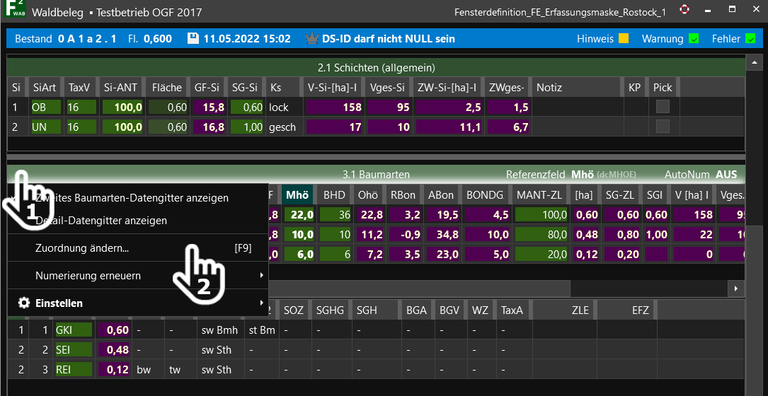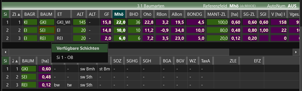 Sie können die Schichtzuordnung und die Reihenfolge der Baumarten in der Schicht auch nachträglich noch beliebig ändern.