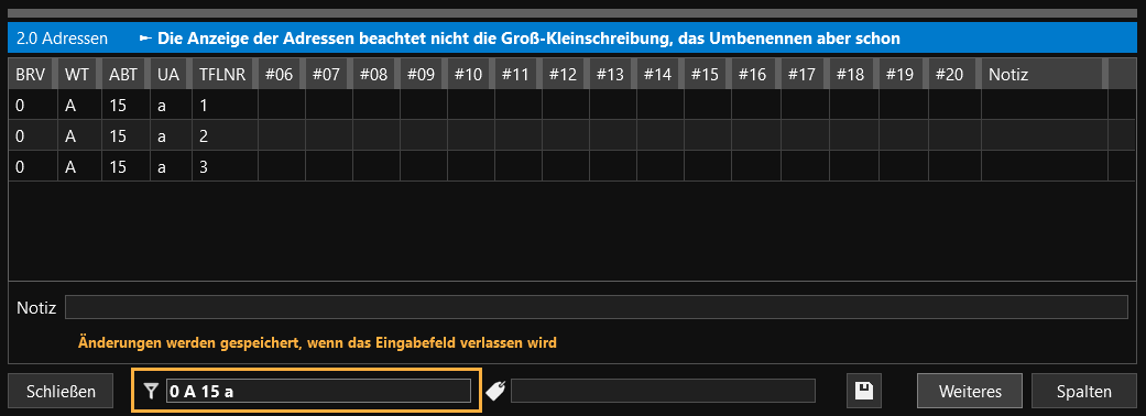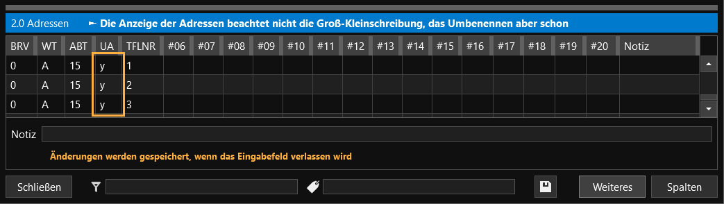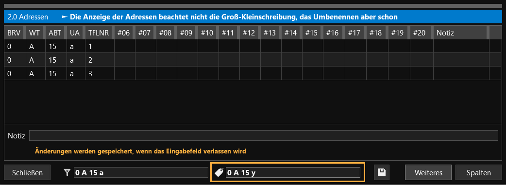 - Im durchgeführten Beispiel war die Umbenennung erfolgreich. Die drei Waldadressen, mit der Zuordnung der Unterabteilung y sind nun im Adressfenster zu finden.