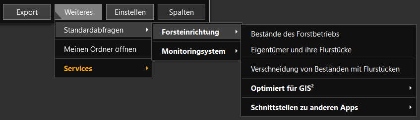 - Klicken Sie auf Weiteres | Standardabfragen | Forsteinrichtung | Bestände des Forstbetriebes,