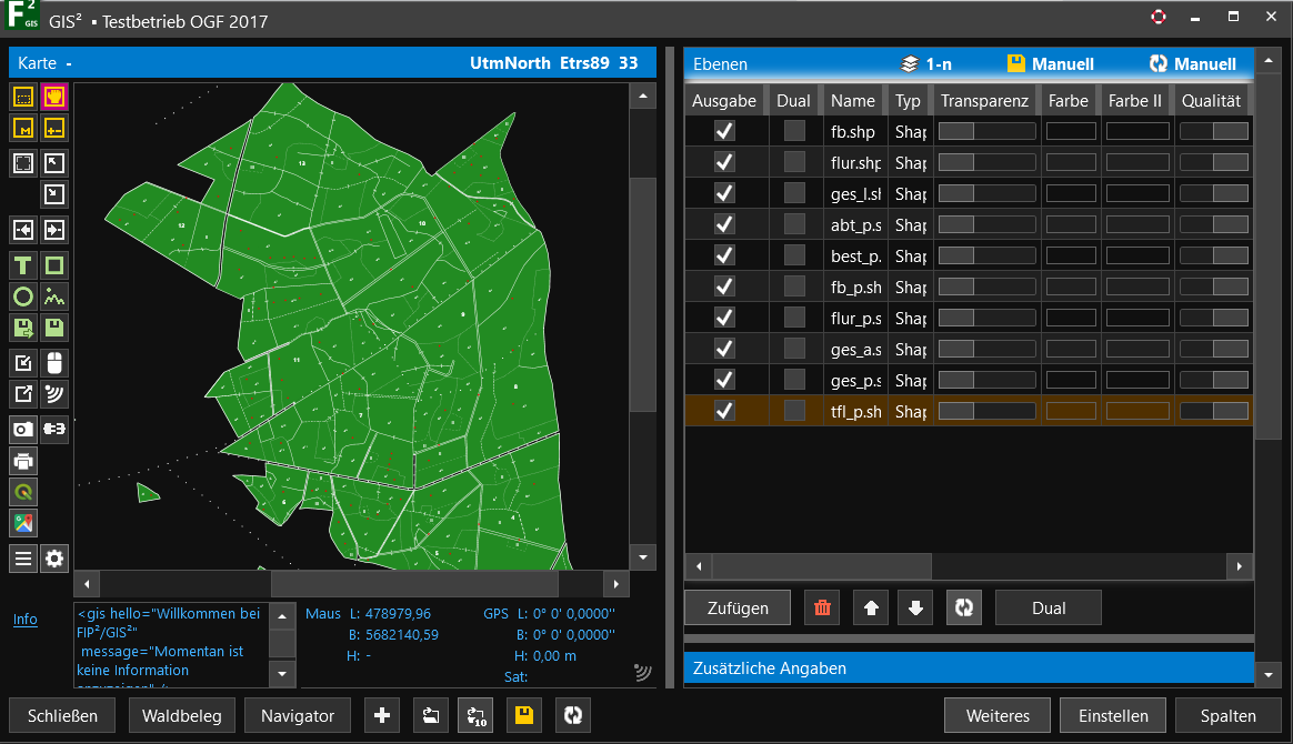 Bitte beachten Sie bei der Integration von GIS-Daten in ein FIP²-Projekt, dass diese in einem einheitlichen und von FIP² unterstützten Koordinatensystem eingebunden werden.