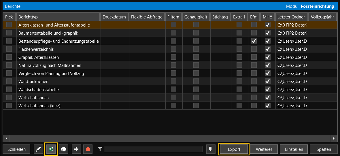 Mit dem Modul Standardberichte haben Sie die Möglichkeit, sich für den angemeldeten Forstbetrieb von FIP² vordefinierte Datenbankabfragen in einem aufbereiteten Format ausgeben zu lassen.