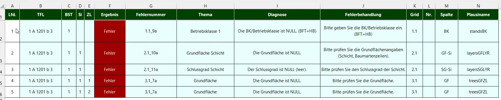 Die Fehler in einem Bestand sind zu korrigieren. Hinweise sind zu kontrollieren und wenn notwendig sollten Korrekturen erfolgen.