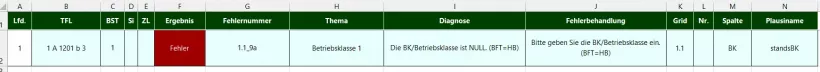 Die Fehlerbehebung erfordert Kenntnisse des Einrichtungsverfahrens. Es ist nicht ungewöhnlich, das im Fehlerprotokoll mehrere Fehler auftreten, deren Ursache ein einzelner Erfassungswert ist. Es sind dann sogenannte Folgefehler auch im Protokoll. Es erfordert in diesem Fall Erfahrung beim Aufspüren des ursächlichen fehlerhaften Erfassungswertes. Im FE-Modul gibt es nur Fehler und Hinweise (keine Warnungen ab 7/2024).