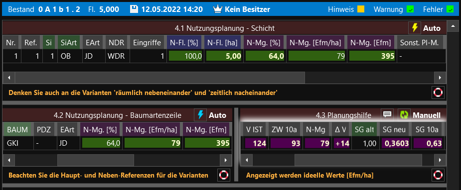 | Grid 4.2 Nutzungsplanung B.-zeile | Grid zur Erfassung der Planung in der Baumartenzeile |