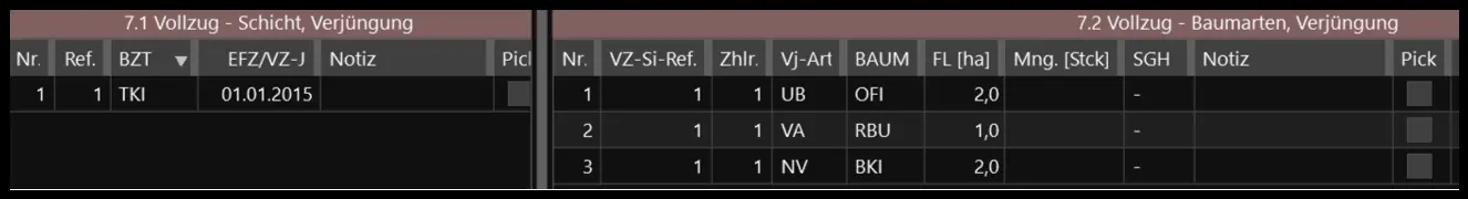 Tragen Sie in die Grids 7.1 und 7.2 den Verjüngungsvollzug ein.