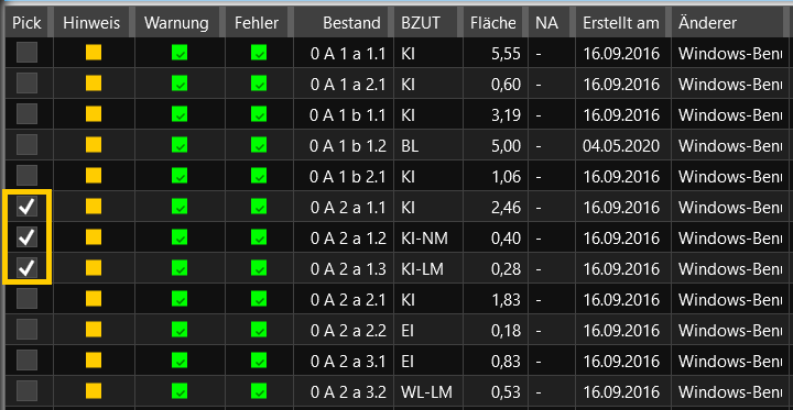 - Markieren Sie im Navigator die Bestände, in welche die aktive Feldvorbelegung übernommen werden soll.