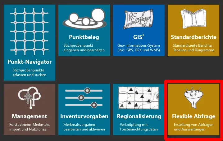Eine detaillierte Beschreibung zu der Flexiblen Abfrage finden Sie im Handbuch Abschnitt Forsteinrichtung/Flexible Abfragen.