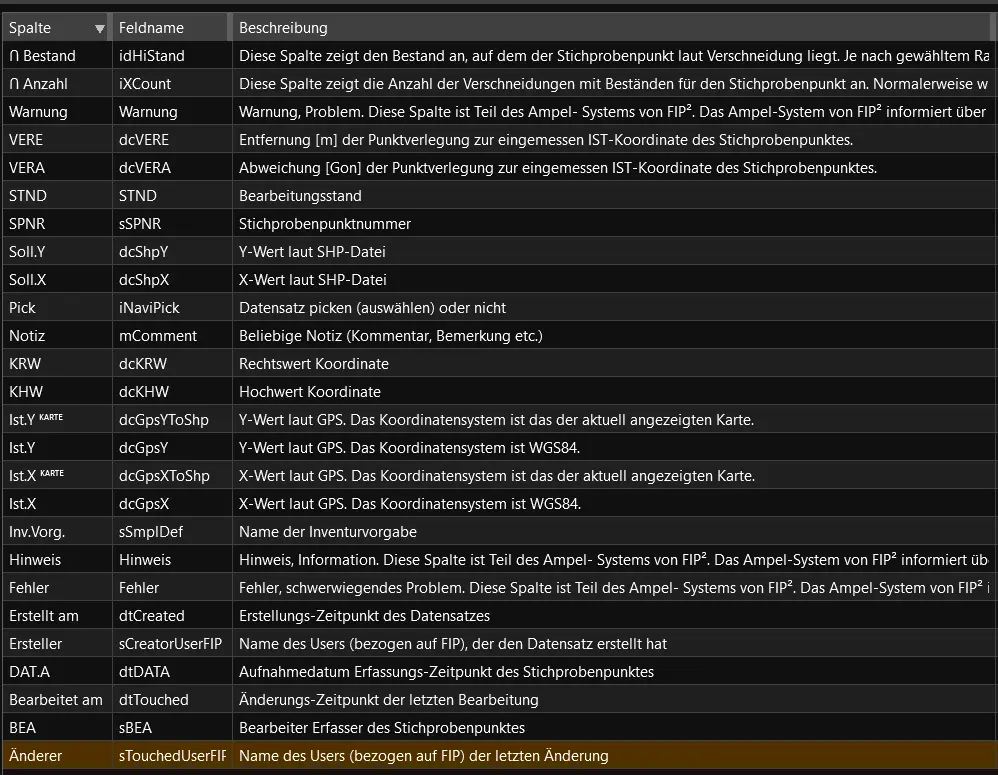 Der Punkt-Navigator dient der Übersicht und der Verwaltung aller in der gegenwärtig geöffneten Forstbetriebsdatenbank enthalten Stichprobenpunkte. Aus dem Navigator heraus lassen sich die Datensätze der einzelnen Stichprobenpunkte organisieren. Der Navigator bietet zudem eine Übersicht über die Datenqualität in den einzelnen Probepunkte (Plausibilitätskontrolle und Hinweis auf fehlende berechnungsrelevante Eingaben). Darüber hinaus behalten Sie im Navigator einen Überblick über den Stand der Bearbeitung eines Datensatzes. Folgende Spalten sind vorhanden: