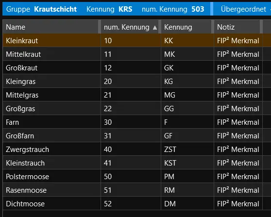 Das Merkmal gibt Auskunft über die Begleitvegetation im Verjüngungskreis. Dies unter dem beson- deren Augenmerk etwaiger Konkurrenz für Verjüngung.