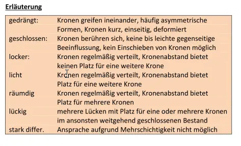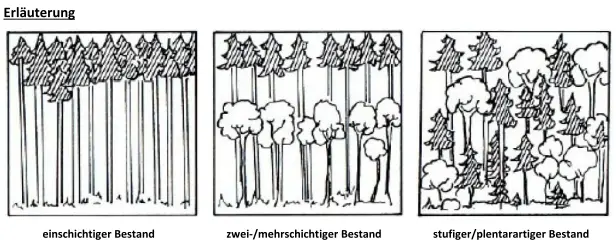 Das Merkmal gibt Auskunft über Schichtung des Waldbestandes am Stichprobenpunkt innerhalb des Probekreises mit dem größten Radius.