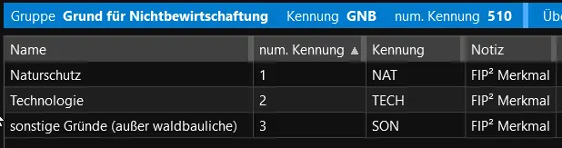 Eine Eintragung kann folglich nur dann vorgenommen werden, wenn beim Merkmal BEWIRTSCHAFTUNG (BWirt.) die Eintragung „nicht bewirtschaftet“ erfolgte. Anderenfalls bleibt das Merkmalsfeld blockiert.