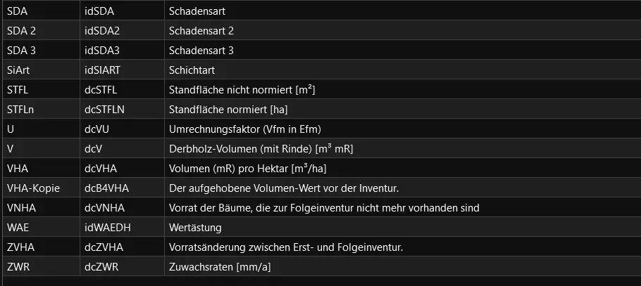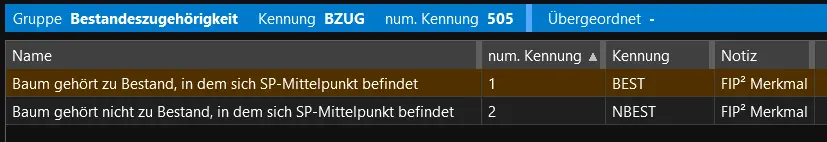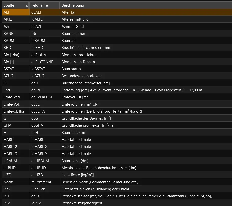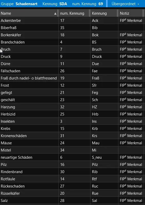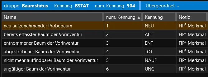 Die Liste der standardmäßig in FIP2 hinterlegten Baumarten findet sich unter folgendem LINK