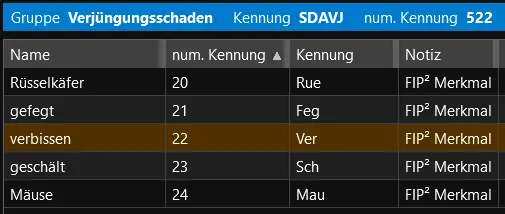 Die Liste der standardmäßig in FIP2 hinterlegten Baumarten findet sich unter folgendem LINK
