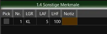 Im Punktbeleg im Grid 1.4 Sonstige Merkmale sind folgende Merkmale enthalten: