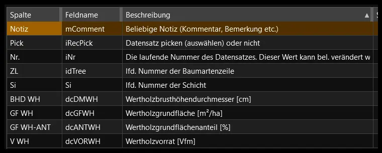 Im FIP2 Grid 3.3 Wertholz können folgende Merkmale erfasst werden: