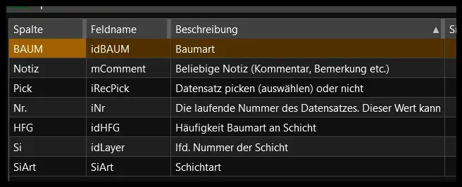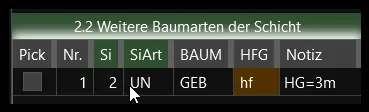 In dem Grid können Baumarten nachrichtlich erfasst werden, die keine eigene Baumartenzeile erhalten.