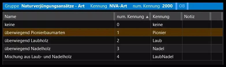 - Merkmalsgruppe NVA-Art (Naturverjüngungsansätze-Art)